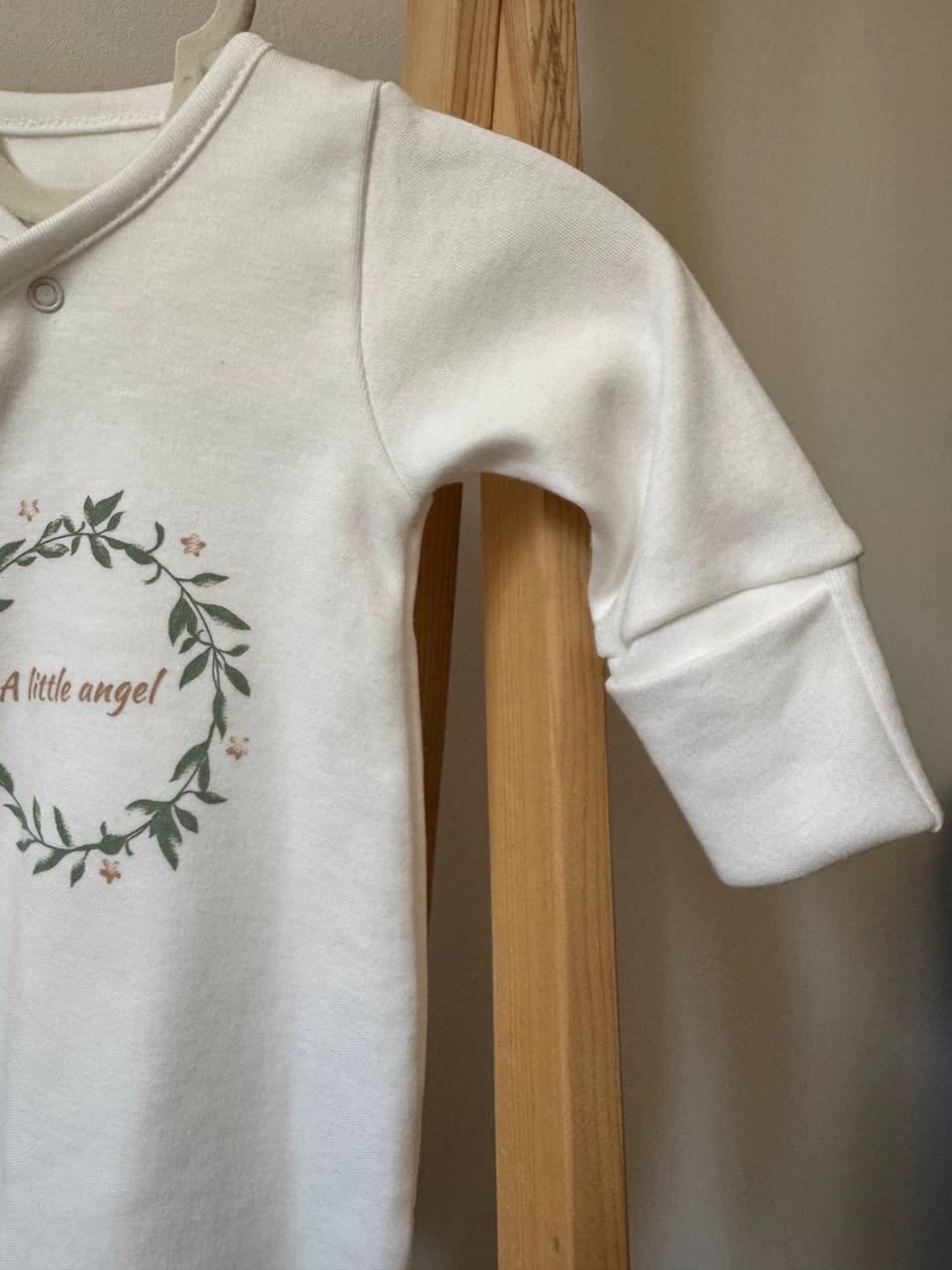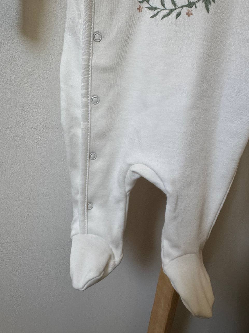 Невагомий сліп, виготовлений з добірного інтерлоку для особливої турботи про шкіру немовляти. Гладке бавовняне полотно вільно пропускає повітря та підтримує природний теплообмін, даруючи малюку відчуття комфорту. Завдяки надійним кнопкам по всій довжині, процес переодягання стає секундною справою, не спричиняючи зайвого занепокоєння. Модель доповнена вбудованими антицарапками на рукавах, закритими стопами та ергономічним кроєм для безперешкодної активності. Це втілення естетичного мінімалізму та комфорту, що стане кращим вибором для перших днів життя. Розмір: 56 (0-1 місяць).