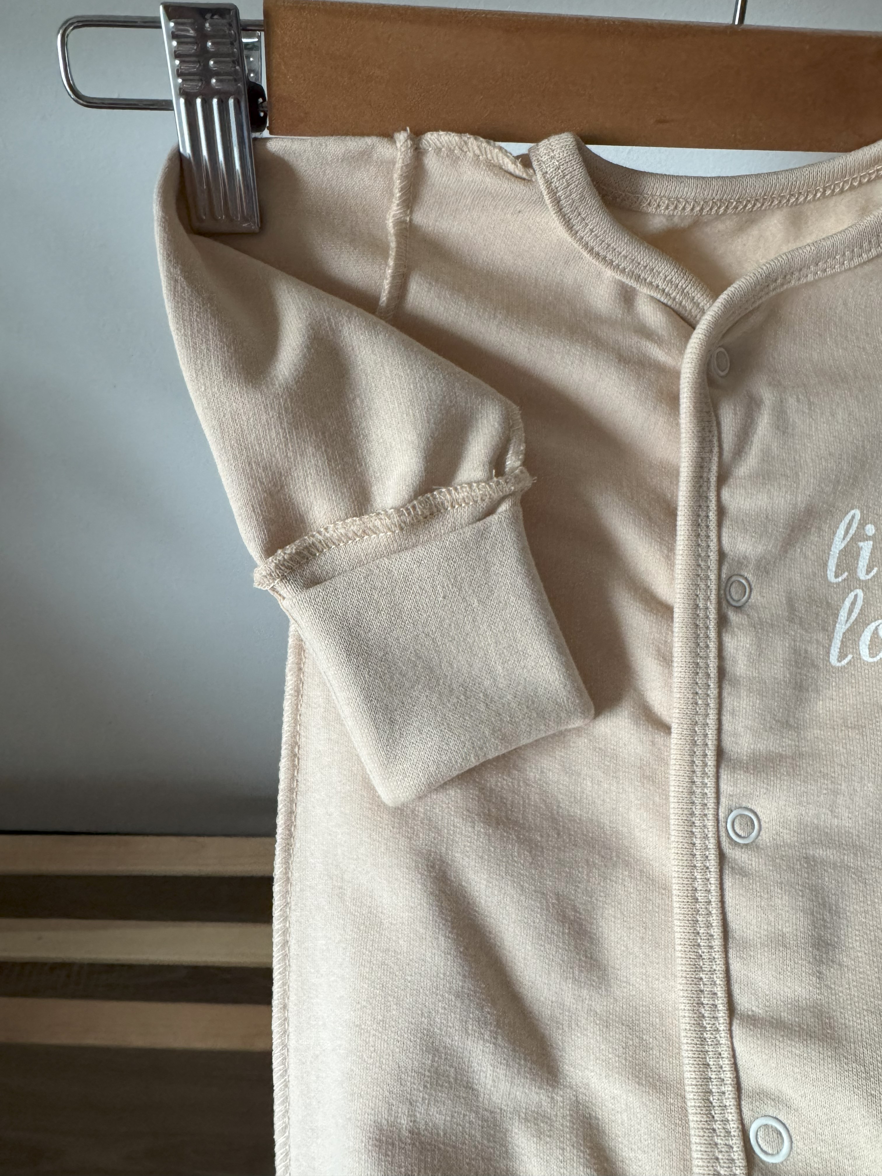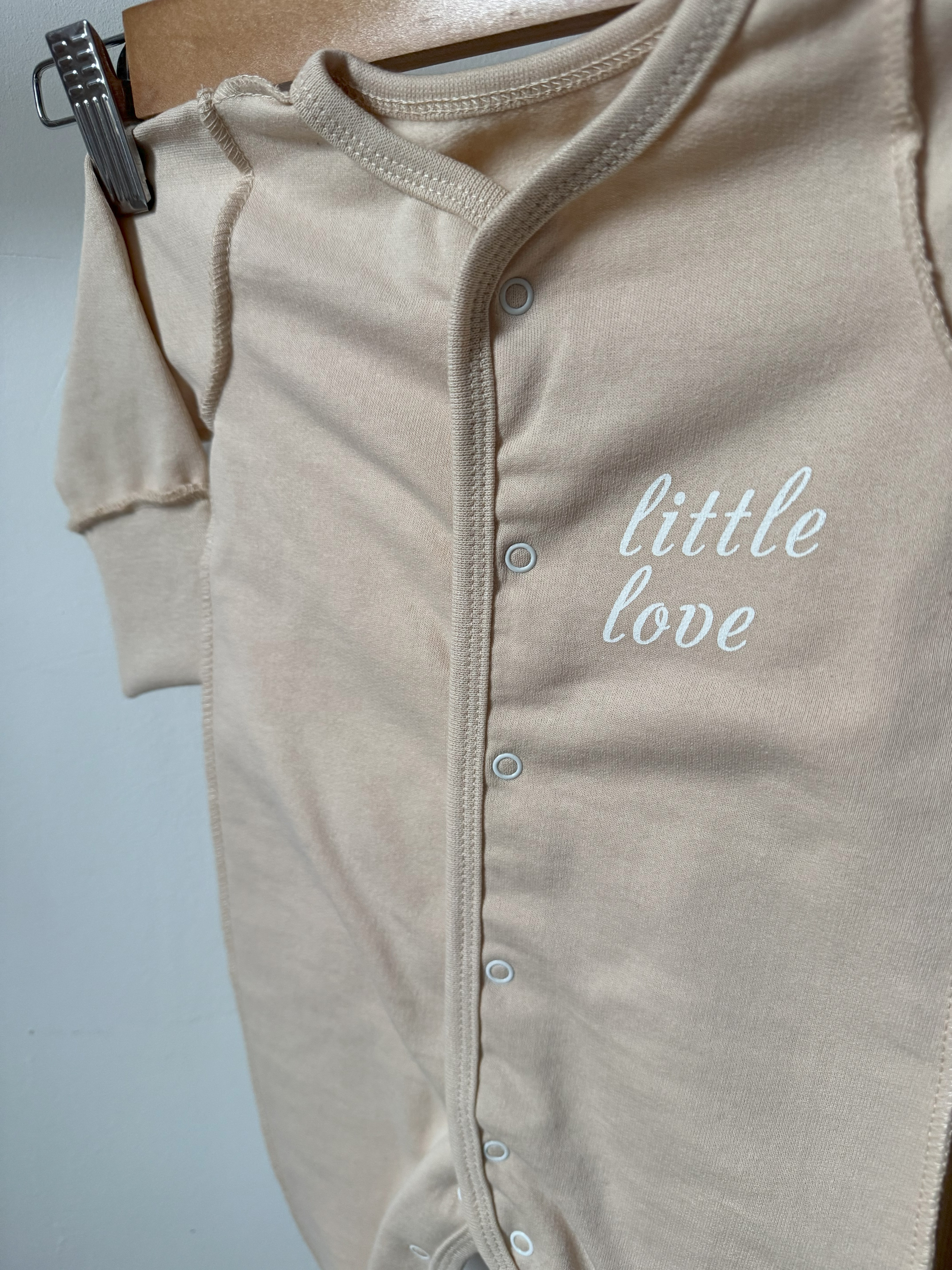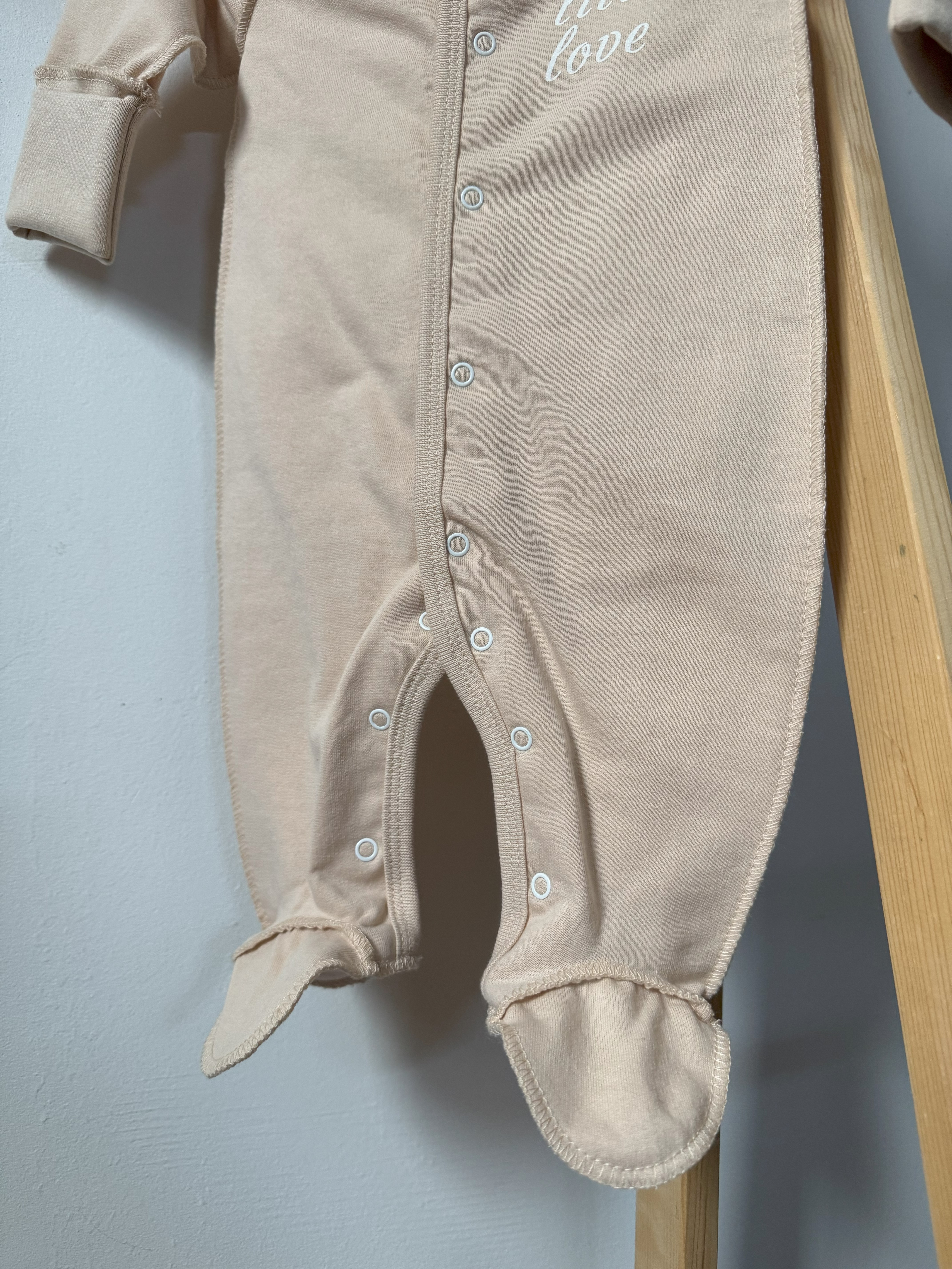 М'який і теплий чоловічок з тканини футер. Натуральна бавовна з м’яким начосом всередині дбайливо зберігає тепло та дозволяє шкірі дихати, а зручні кнопки по всій довжині роблять переодягання швидким і легким. Модель має закриті ніжки, манжети-антицарапки та правильний крій, що не сковує рухів немовляти. Це поєднання затишного дизайну та бездоганного комфорту, яке ідеально підходить для першого гардероба або виписки. Розмір: 56 (0-1 місяць).