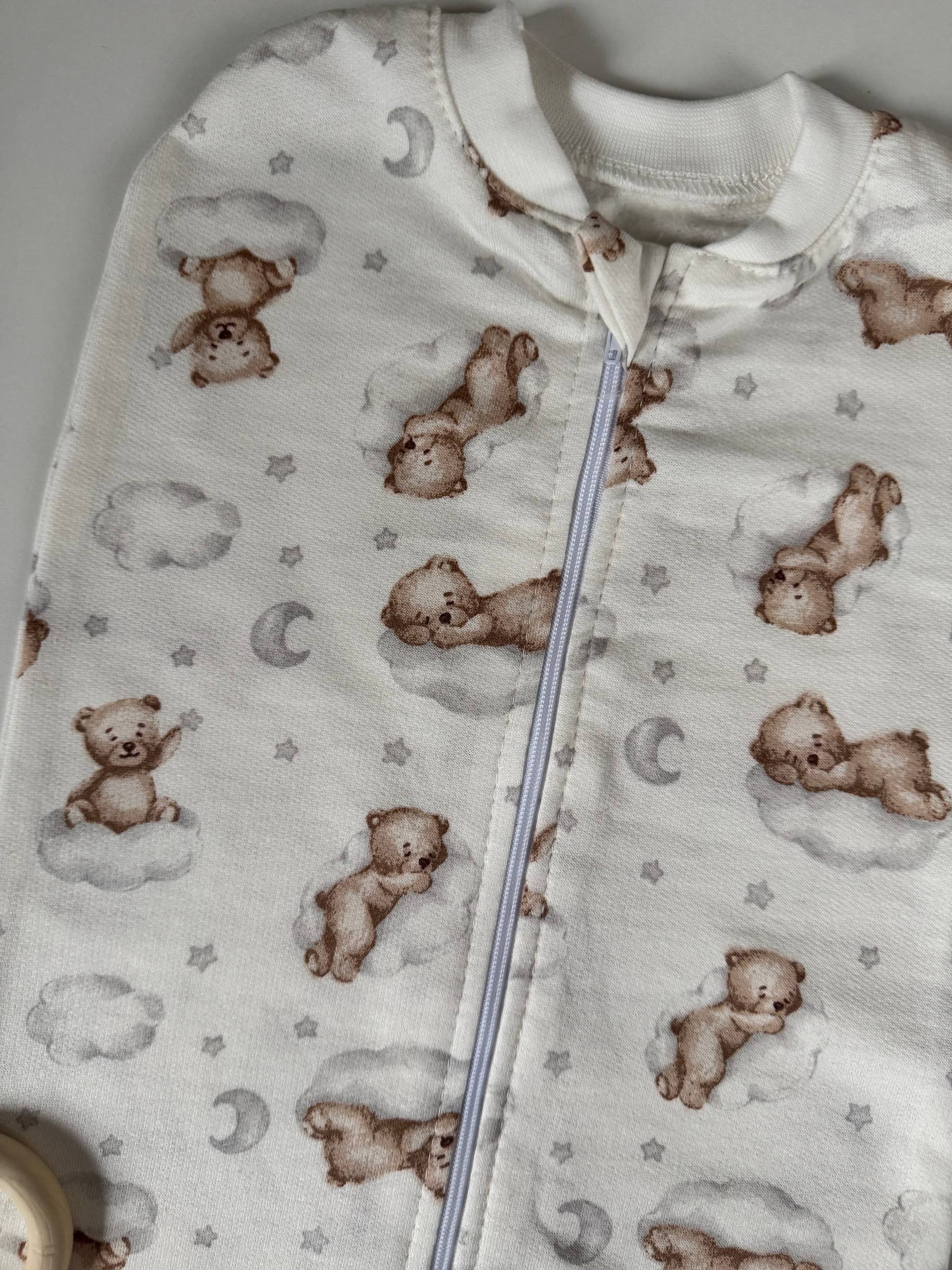 М’який і затишний кокон, що дарує немовляті відчуття безпеки та комфорту, як в маминому животику. Натуральна бавовна з ніжною текстурою футеру дбайливо зберігає тепло та дозволяє шкірі дихати, створюючи ідеальні умови для спокійного сну. Завдяки зручній блискавці, європелюшка дозволяє швидко сповити малюка, не обмежуючи його природних рухів, але водночас запобігаючи переляку від власних ручок. Модель доповнена спеціальним захистом біля підборіддя, щоб блискавка не торкалася ніжної шкіри. Це сучасне рішення для легкого засинання та безтурботних перших місяців життя. Розмір: 56-62 (0-3 місяці).