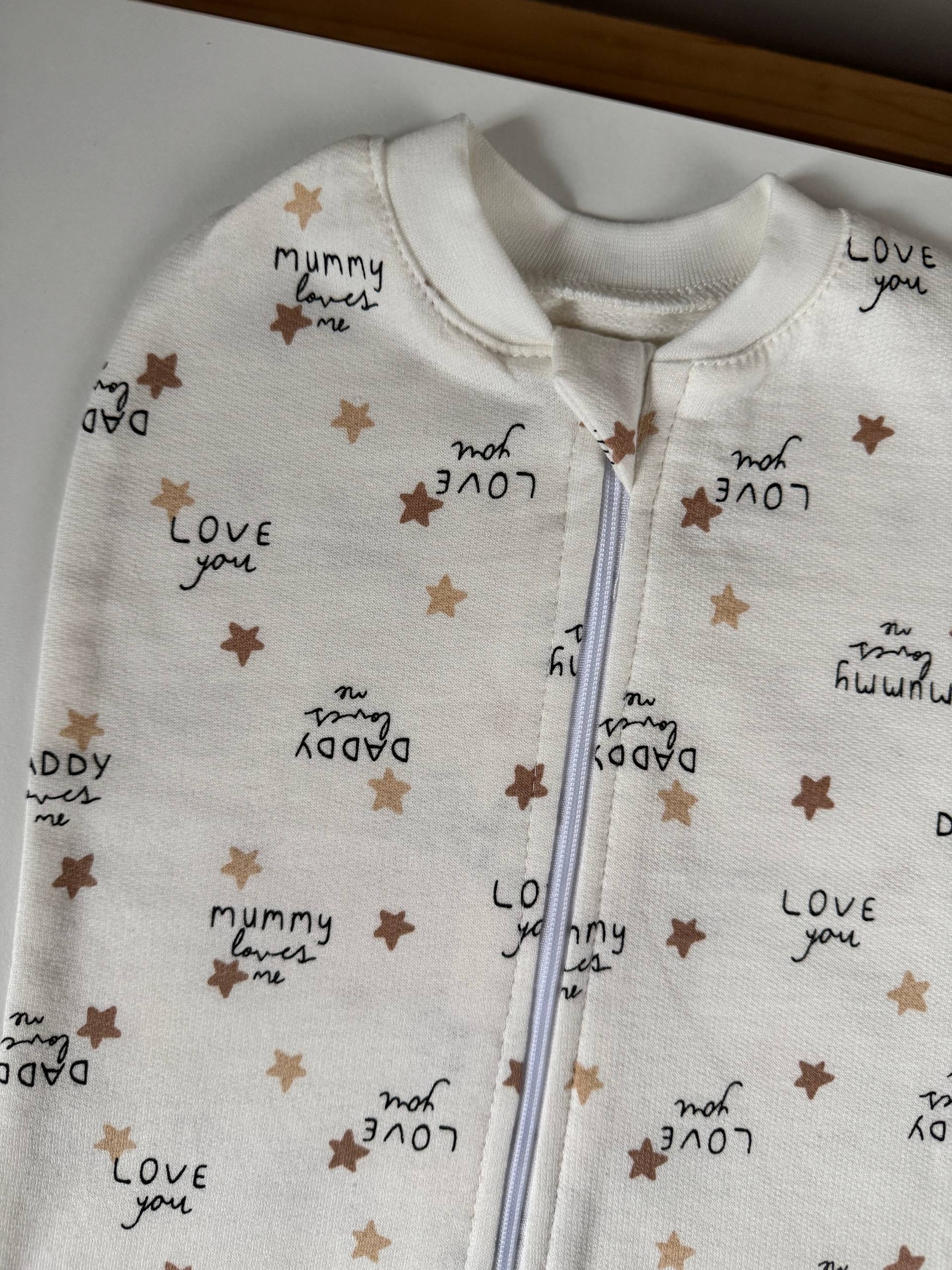 М’який і затишний кокон, що дарує немовляті відчуття безпеки та комфорту, як в маминому животику. Натуральна бавовна з ніжною текстурою футеру дбайливо зберігає тепло та дозволяє шкірі дихати, створюючи ідеальні умови для спокійного сну. Завдяки зручній блискавці, європелюшка дозволяє швидко сповити малюка, не обмежуючи його природних рухів, але водночас запобігаючи переляку від власних ручок. Модель доповнена спеціальним захистом біля підборіддя, щоб блискавка не торкалася ніжної шкіри. Це сучасне рішення для легкого засинання та безтурботних перших місяців життя. Розмір: 56-62 (0-3 місяці).