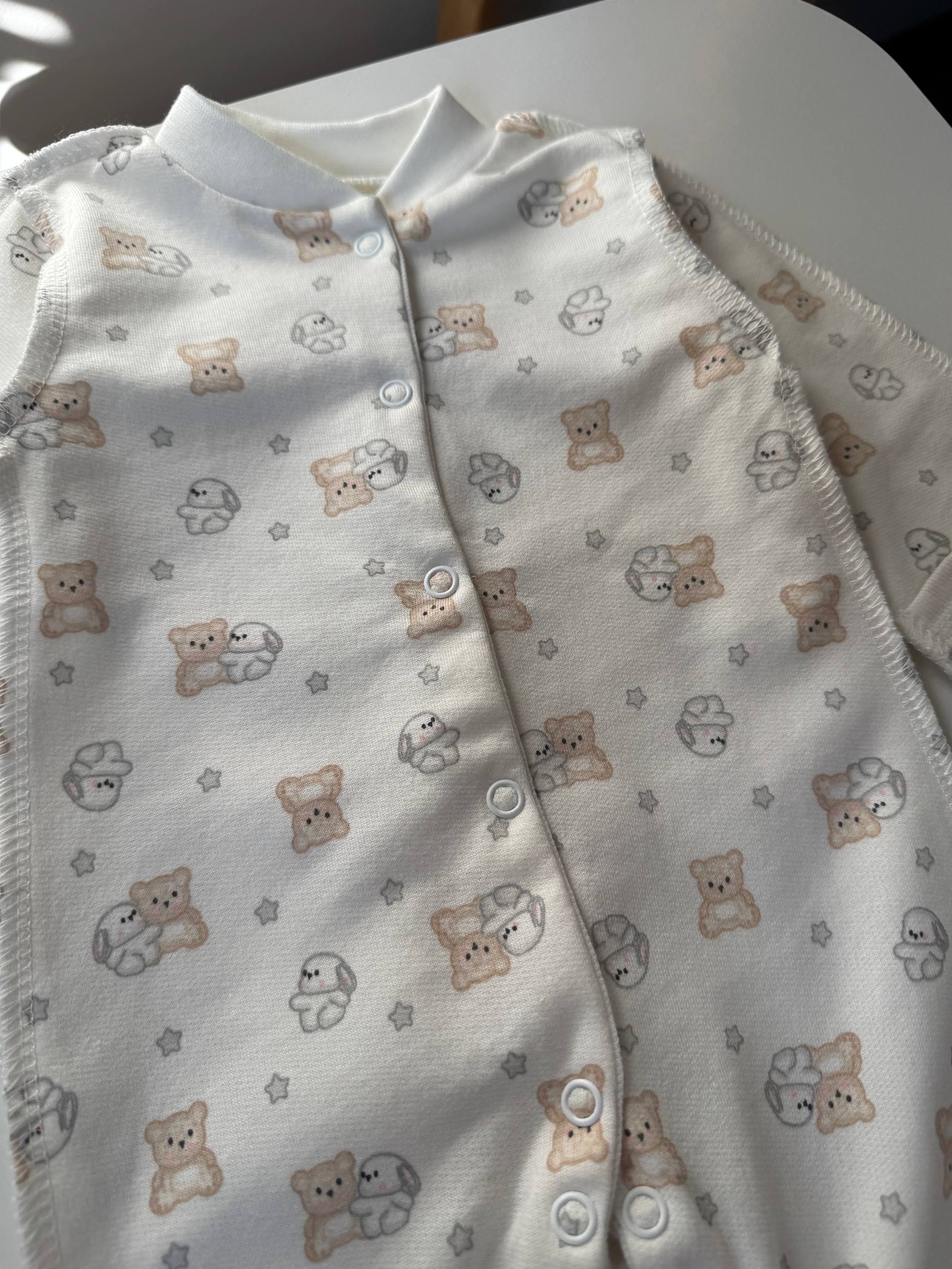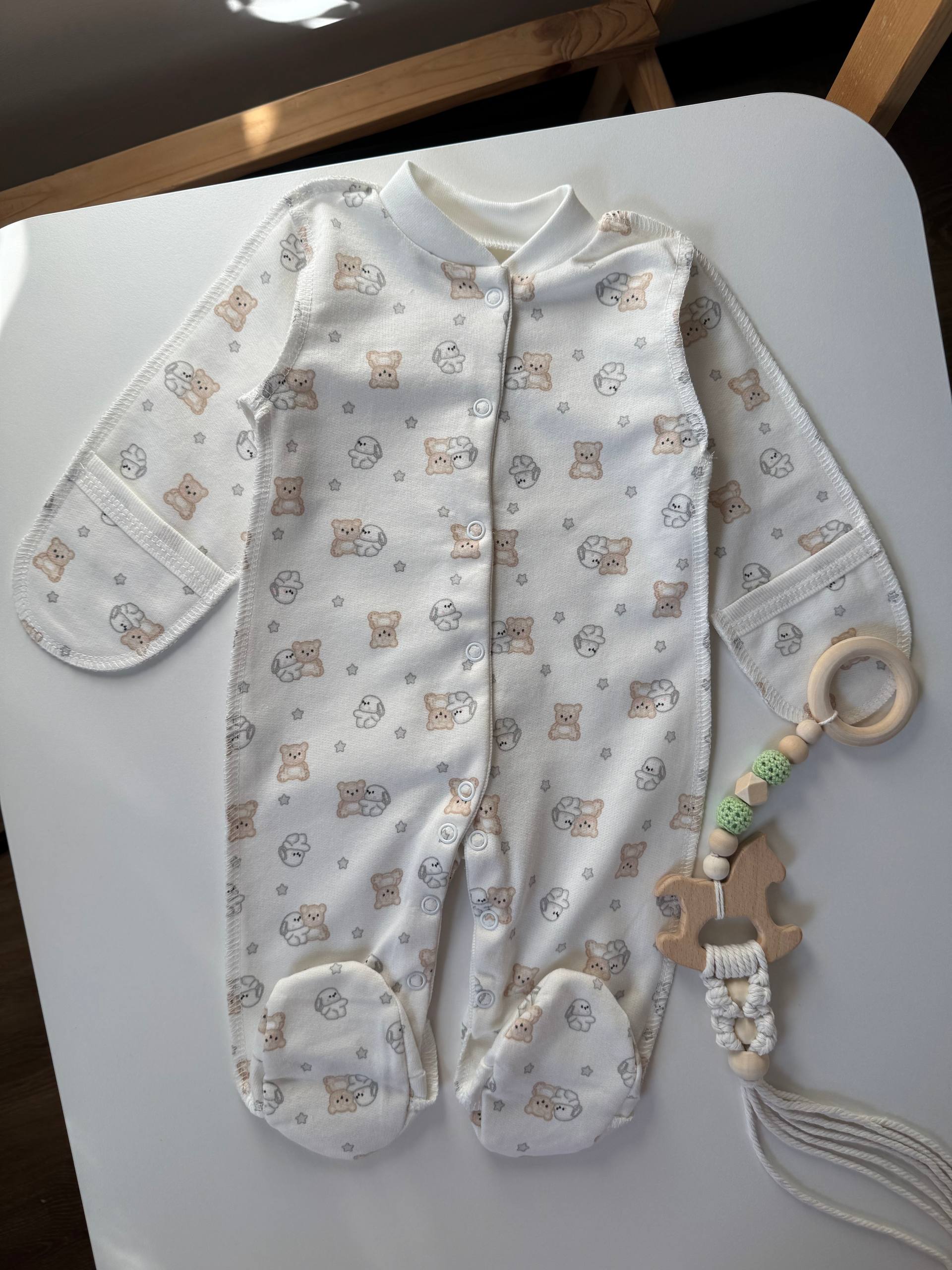 Чоловічок для новонародженого 56–62 з футеру — практичний і зручний одяг для малюка. М’яка тканина приємна до тіла та підходить для чутливої шкіри. Завдяки кнопкам по всій довжині сліп легко одягати. Продуманий крій із зовнішніми швами, закритими ніжками та манжетами-антіцарапками забезпечує максимальний комфорт.