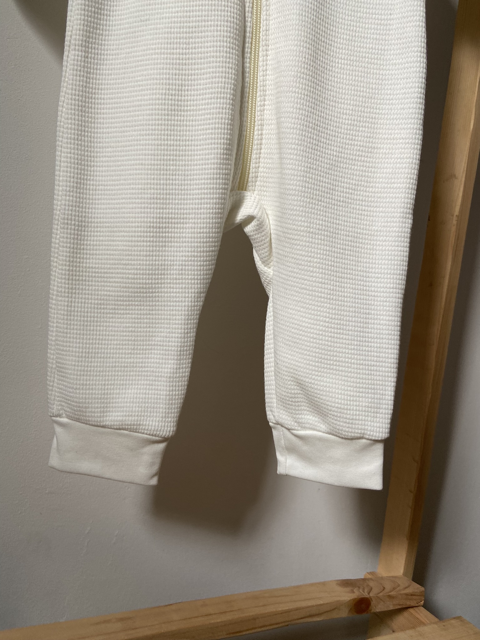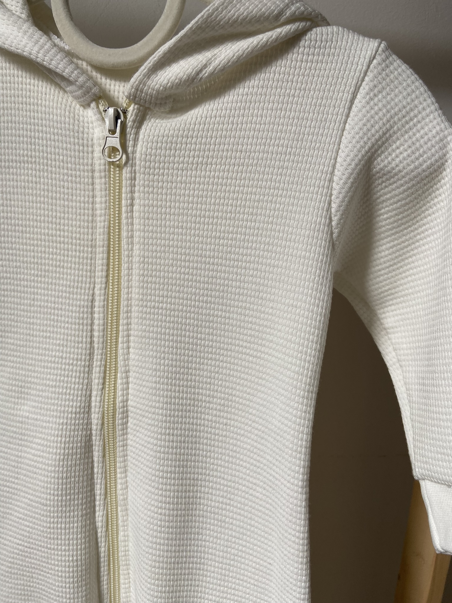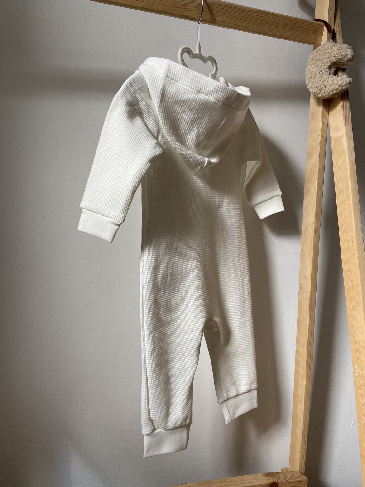 Стильний та неймовірно затишний комбінезон, виконаний з натуральної вафельної тканини для комфортних прогулянок та домашнього відпочинку. Об'ємна фактура бавовняного полотна не лише виглядає естетично, а й забезпечує чудову терморегуляцію, дозволяючи шкірі малюка вільно дихати впродовж усього дня. Продумана конструкція з довгою блискавкою дозволяє переодягнути дитину за лічені секунди. Глибокий капюшон м’яко прилягає до голівки, захищаючи від легкого вітерцю, а еластичні манжети на ручках та ніжках надійно фіксують виріб по фігурі. Модель має правильний анатомічний крій, що дарує повну свободу рухам під час активного пізнання світу. Це гармонійне поєднання сучасного дизайну та природної м'якості, яке стане улюбленим елементом гардероба. Розмір 74 (6-9 місяців).