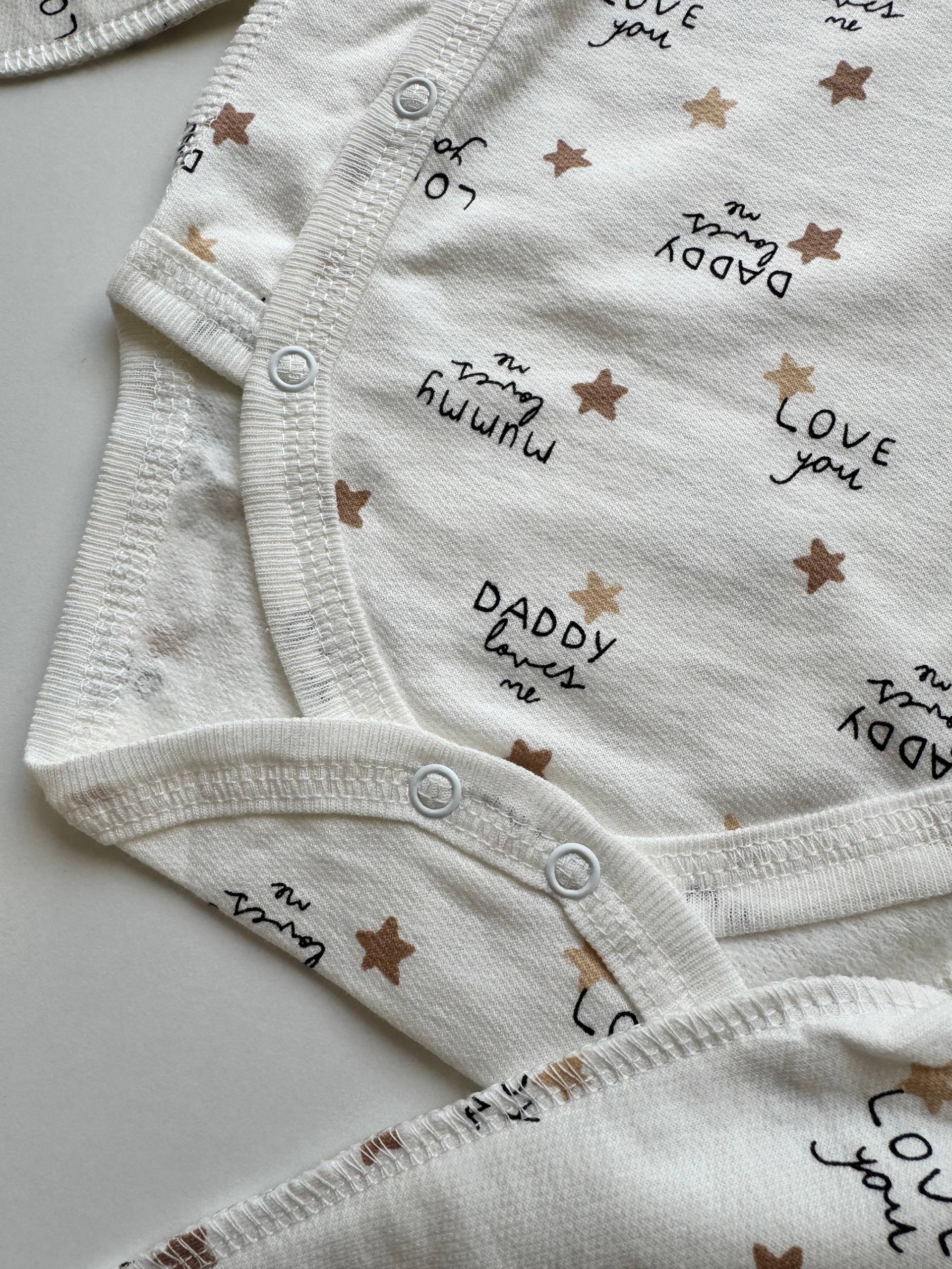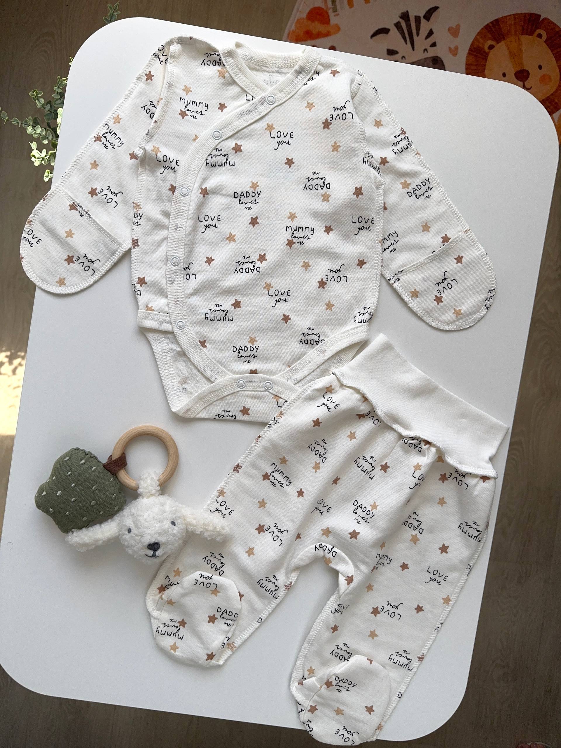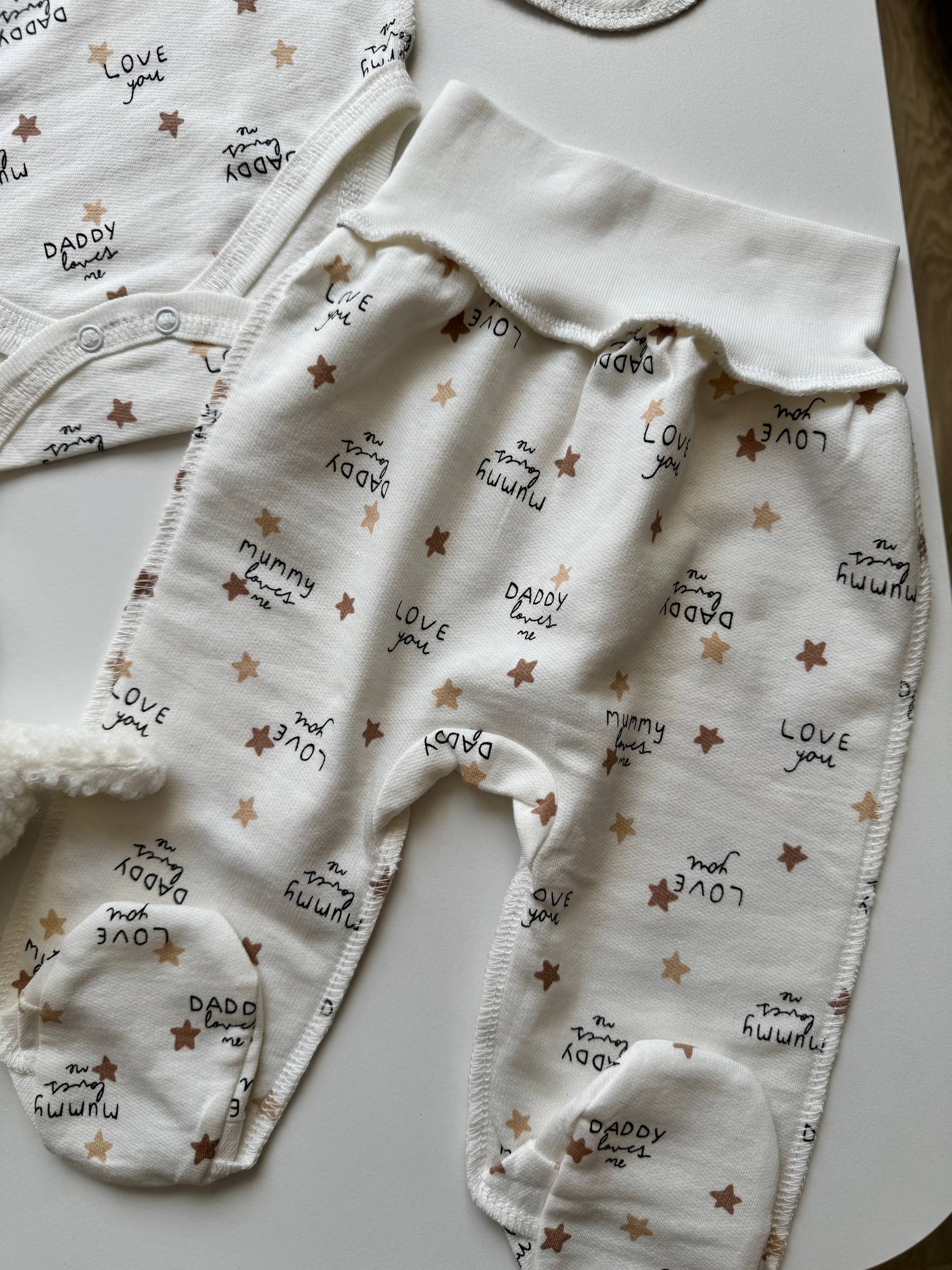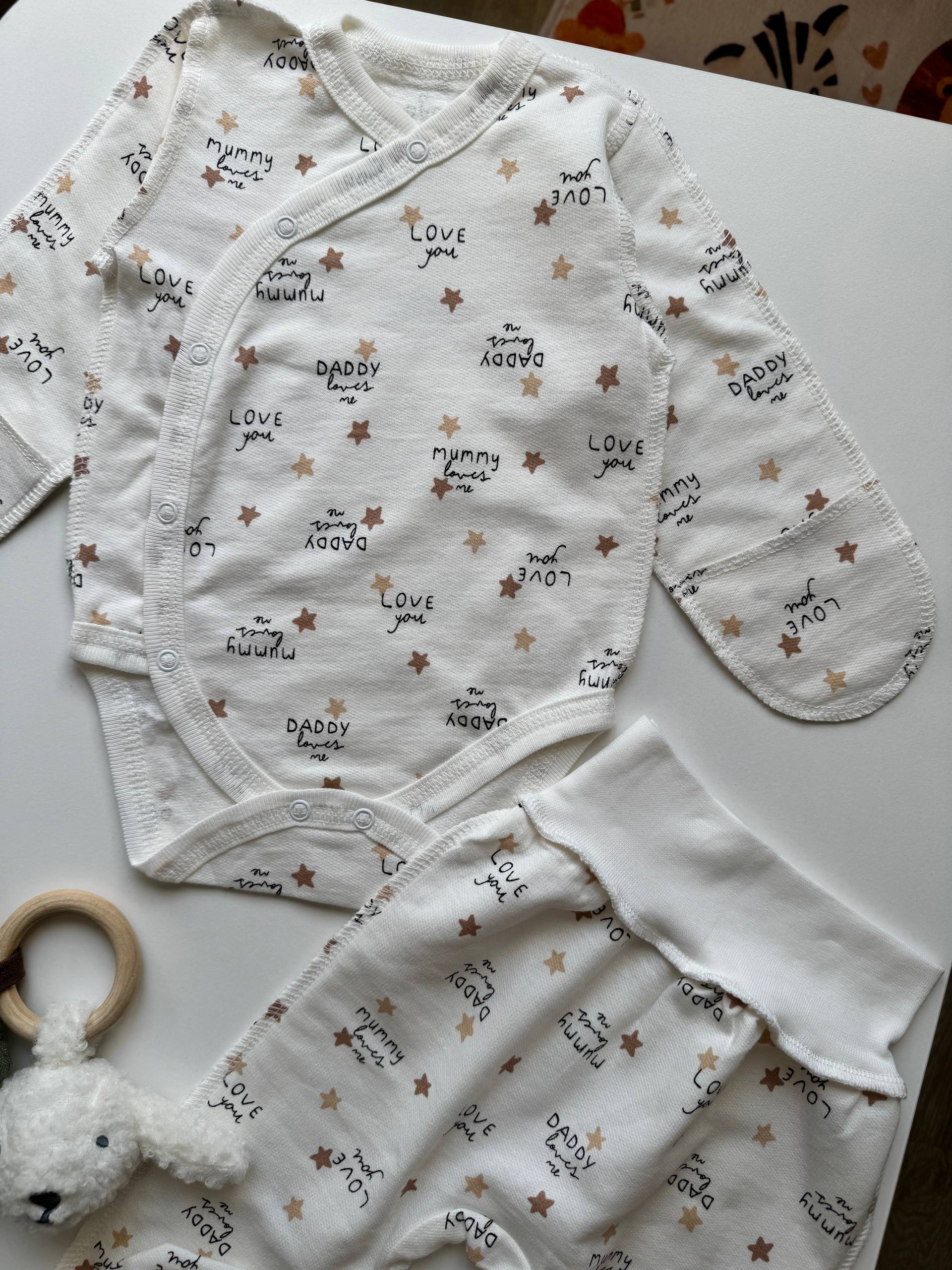Теплий комплект для немовляти: боді та повзунята – ідеальний одяг для малюка. Розмір 62-68 (3-6 місяців). Дитячий комплект виготовлений зі 100% бавовни, що забезпечує м’якість, комфорт і безпечний контакт із ніжною шкірою. Завдяки футеру з начосом одяг добре зберігає тепло та підтримує природну терморегуляцію дитини. У комплект входить боді з кнопками, яке легко одягати та знімати, має манжети-антицарапки для додаткового захисту. Повзунята мають еластичний пояс, який делікатно фіксує виріб і не тисне на животик. Анатомічний крій не обмежує рухів, що особливо важливо для активного розвитку малюка. Натуральна тканина дозволяє шкірі дихати та не викликає подразнень. Комплект підходить для сну, прогулянок і як базовий одяг для немовлят.