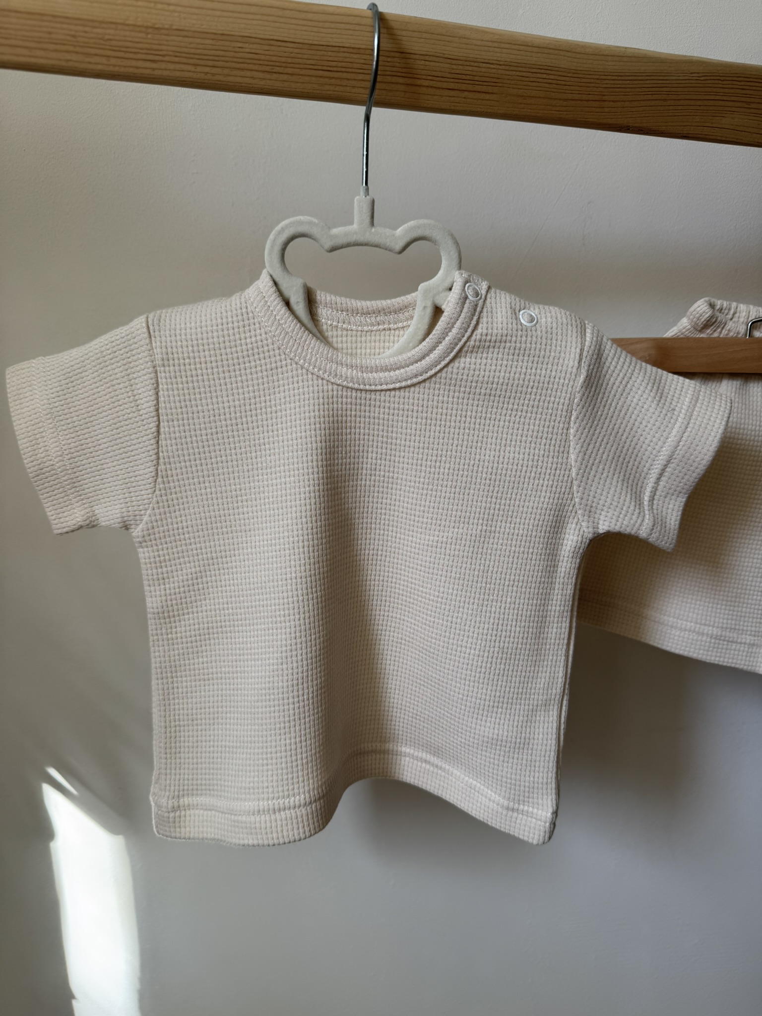 Стильний літній сет, створений із добірного інтерлоку для максимальної свободи вашого малюка. Особливе плетіння бавовняного полотна дозволяє виробам ідеально тягнутися, повторюючи кожен рух дитини та миттєво повертаючи початкову форму. Комплект складається з вільної футболки лаконічного крою та зручних шортиків на м’якому поясі, що делікатно фіксується на талії, не створюючи зайвого тиску на животик. Натуральний склад тканини гарантує бездоганну циркуляцію повітря, даруючи відчуття прохолоди навіть у найспекотніші дні. Це втілення сучасного мінімалізму та природного затишку, що стане незамінною базою для активних прогулянок чи комфортного відпочинку. Розміри: 62 (1-3 місяці), 68 (3-6 місяців).